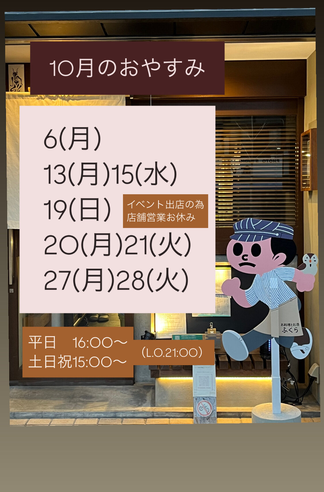 いつも「お料理とお酒 ふくら」をご利用いただきありがとうございます。